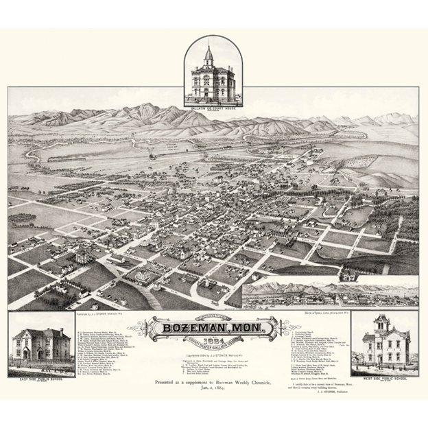 1883 84 Birdseye Bozeman Print โ Architect’s Wife