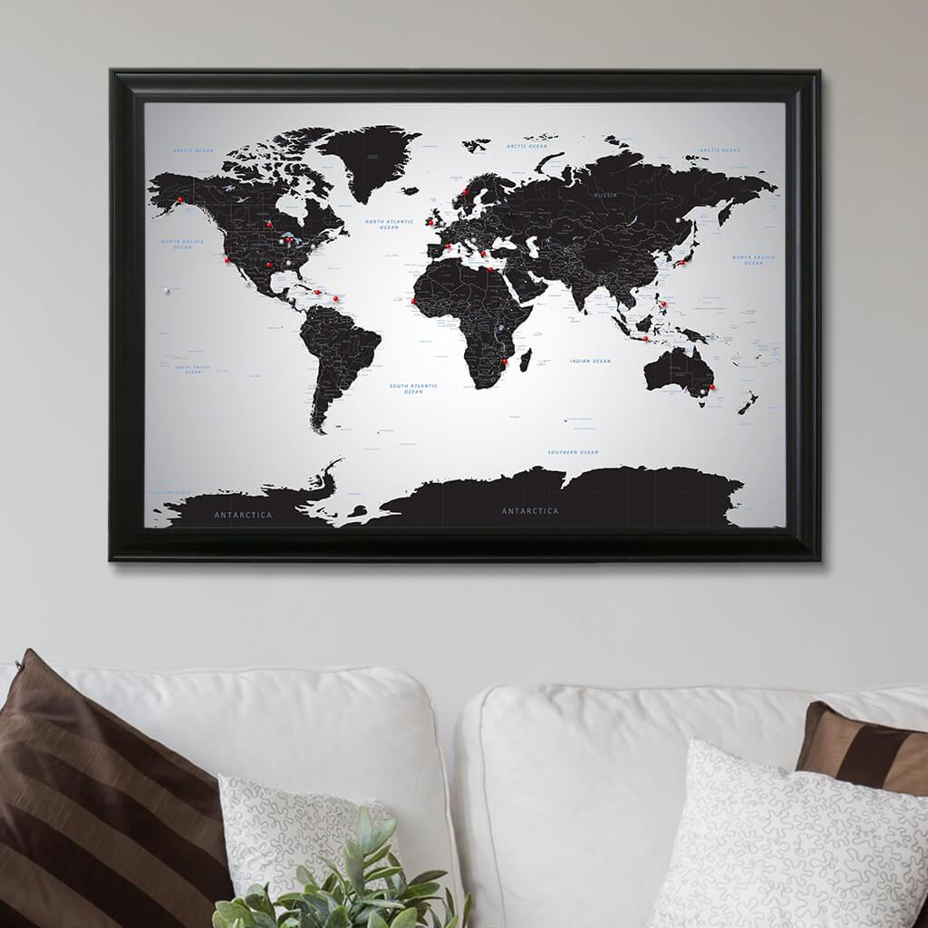 Framed Push Pin World Map, Family Adventure Map for Pins