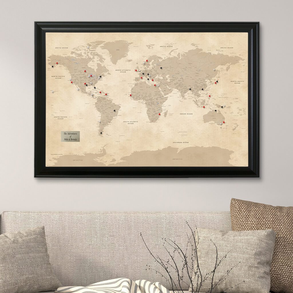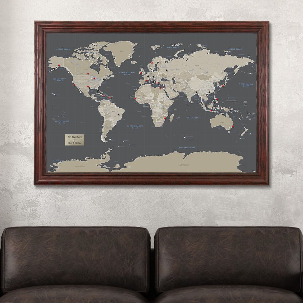 Earth Toned World Map | World Map in Frame | Push Pin Travel Maps