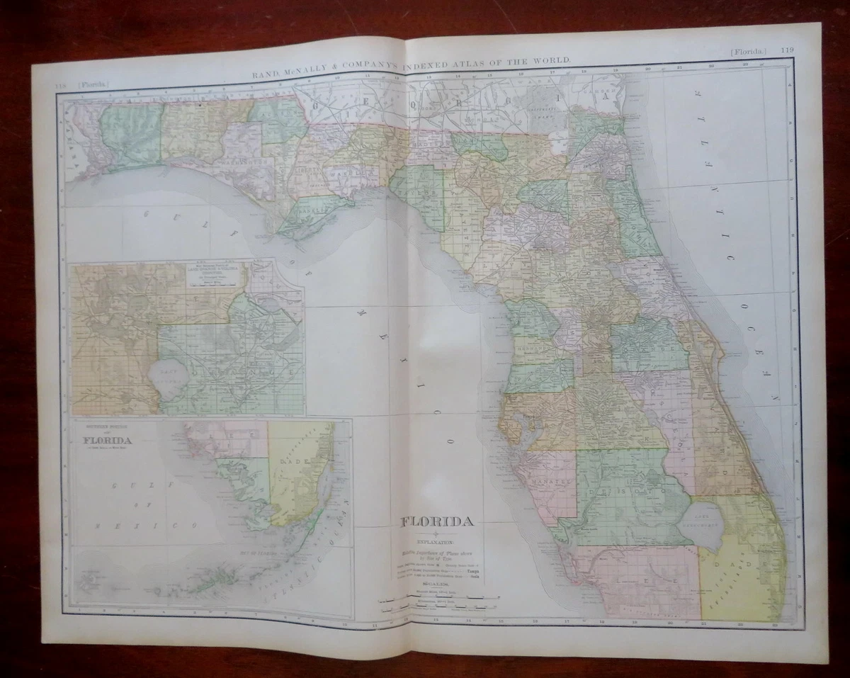 Florida Miami Tampa Bay Tallahassee Florida Keys 1902 Rand McNally