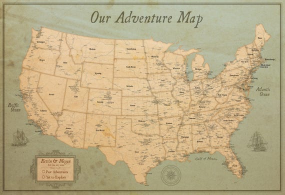 USA Map Push Pin Map Rustic Style 13×19 Customizable Pin Board