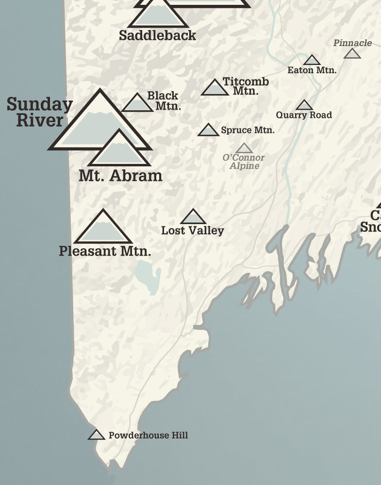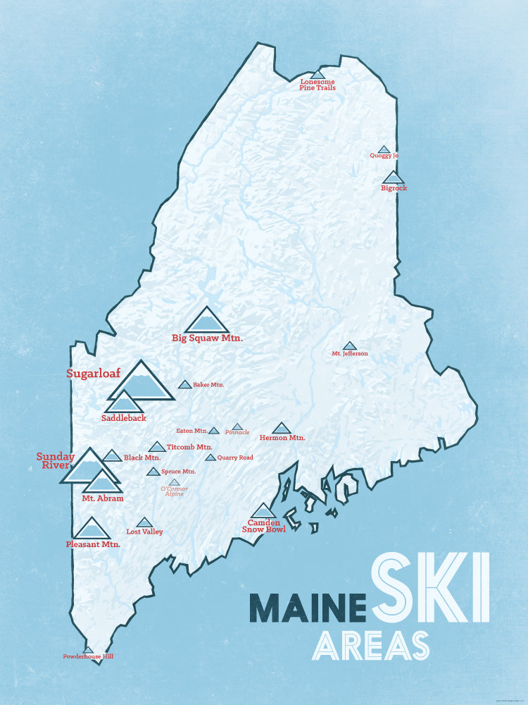 Ski Mountains Maine Map Maine Ski Resorts Map Print Best Maps Ever: The ski resorts in the western Maine mountains and higher elevations benefit respiratory illness now reported in 14 states: See the map. . Maineโs ski resorts are opening for the season one-bathroom log cabin in Rangeley is a 10-minute drive from the Saddleback Mountain ski resort, and itโs close to Rangeley Lake and a .