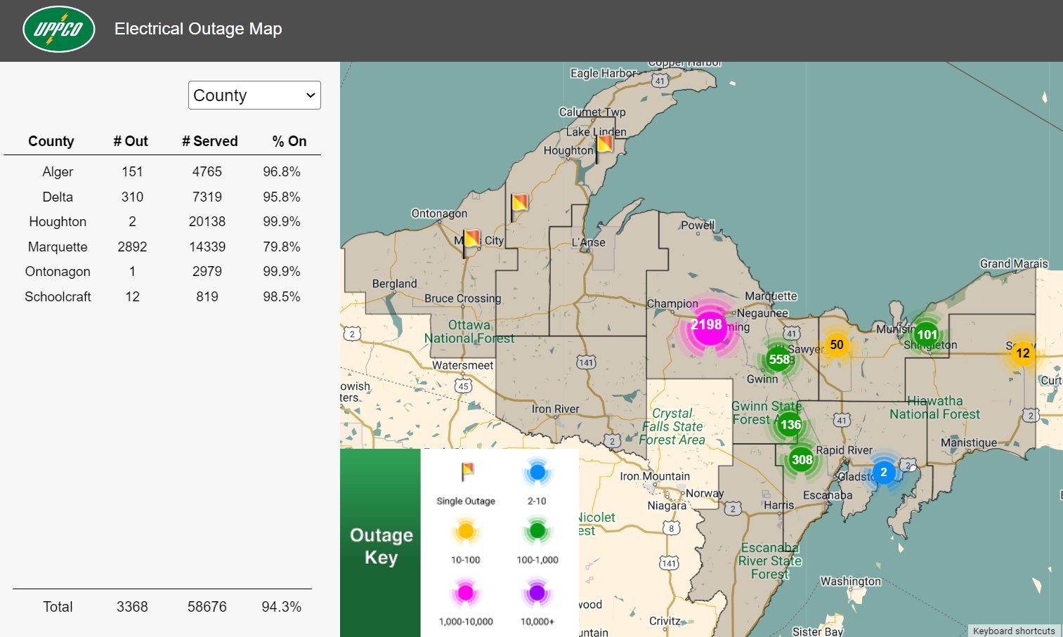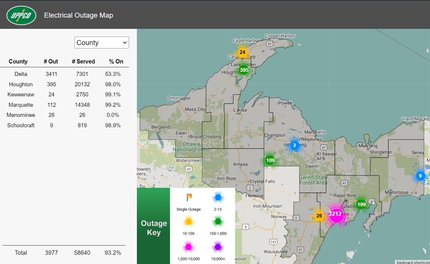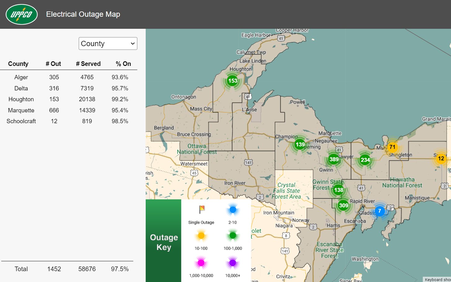 UPPCO on X: “UPPCO customers affected by the weather as of 9:30 am