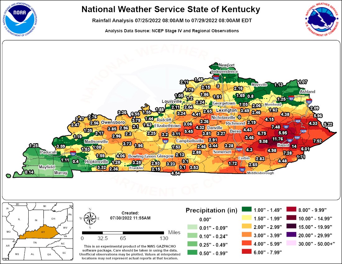 NWS Louisville on X: “Kentucky 4 day observed rainfall analysis
