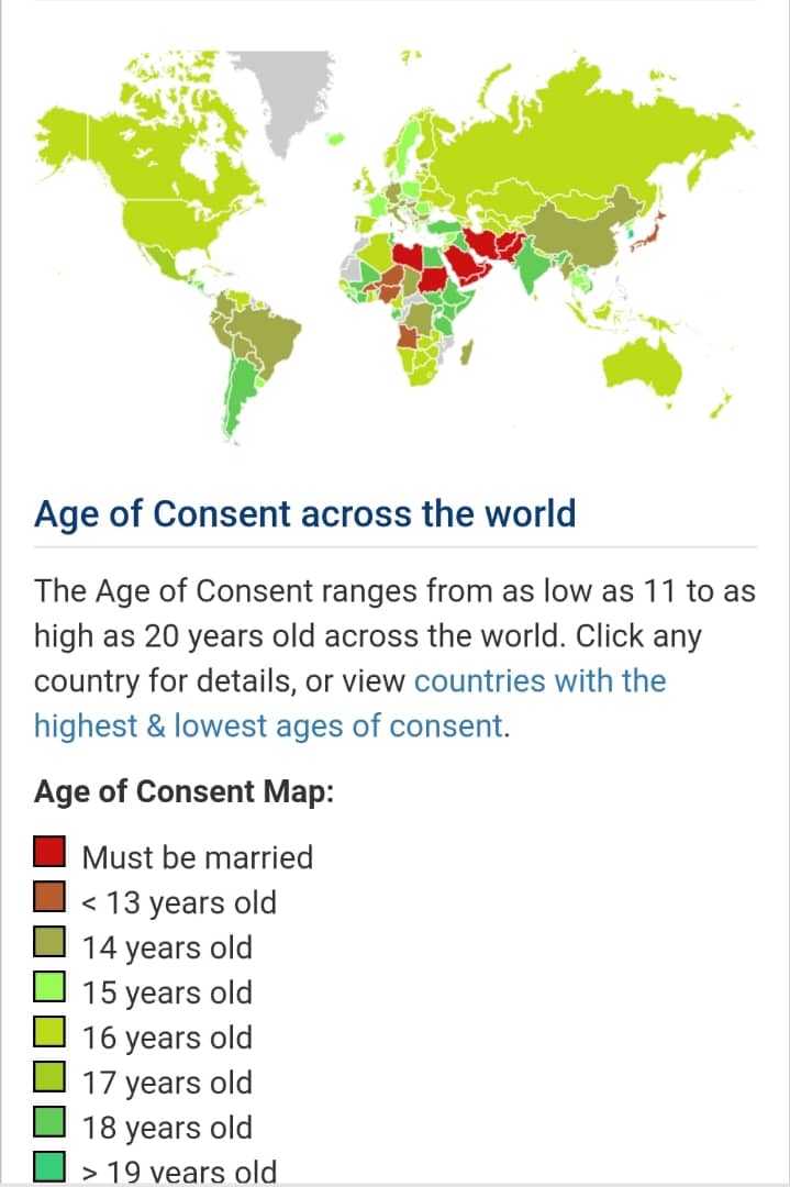 Map of countries by age of consent : r/MapPorn